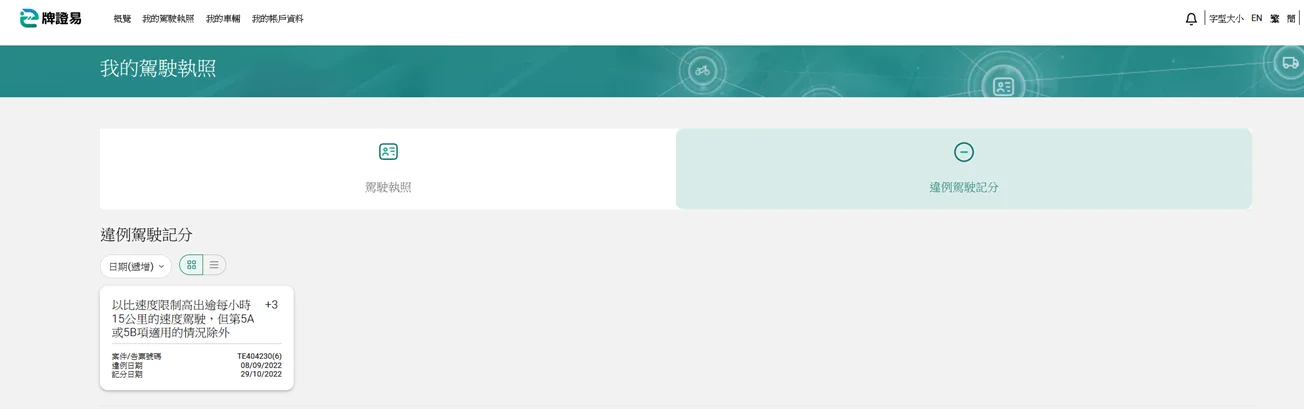 「牌證易」(e-Licensing Service Platform)是運輸署推出的電子牌照服務平台,透過牌證易可查看駕駛執照、車輛登記資料及違例記分紀錄,以及申請相關文件續期等。